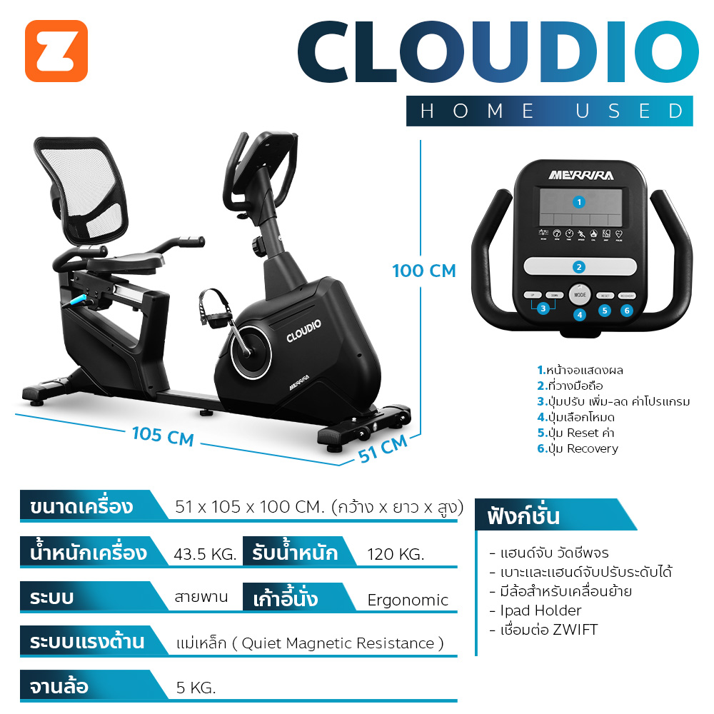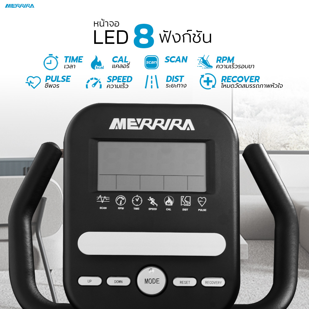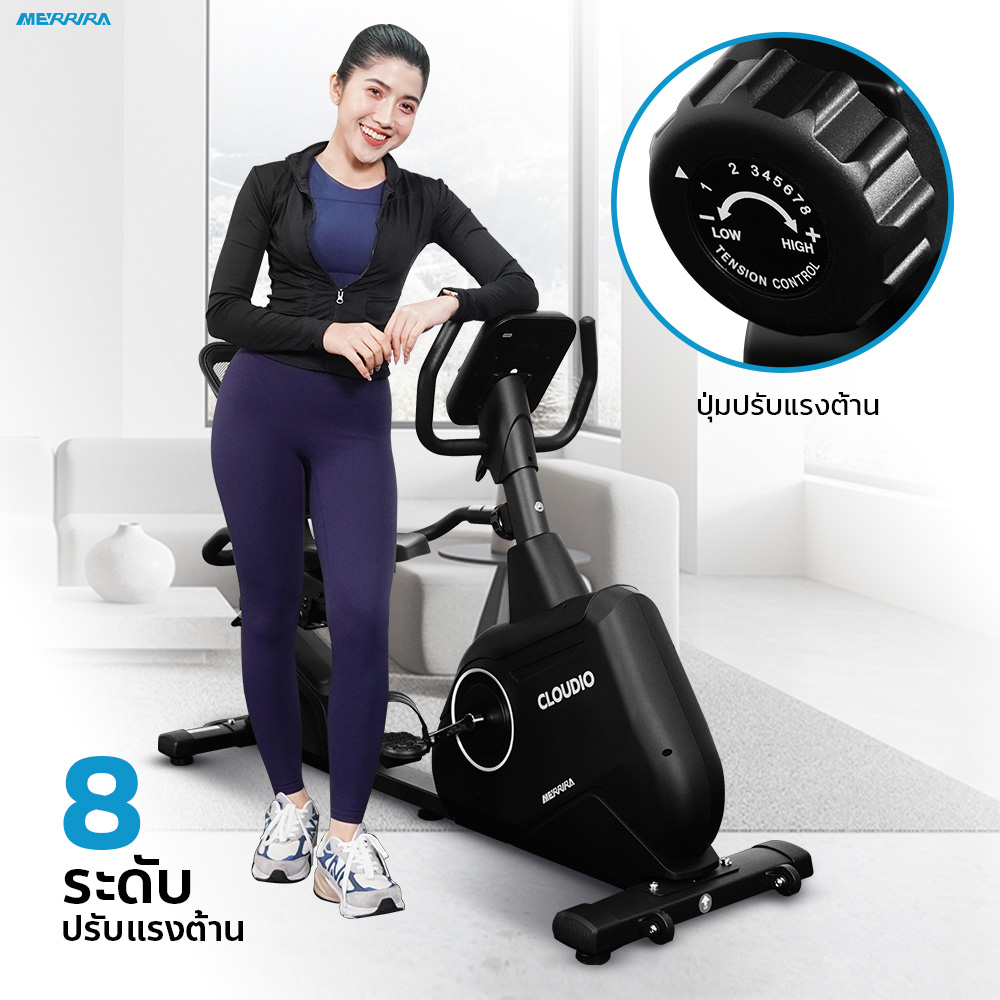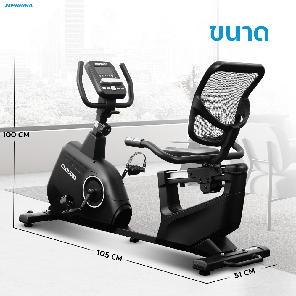 ปั่นเพลินแบบไม่เมื่อย — MERRIRA Cloudio จักรยานเอนปั่นเก้าอี้ Ergonomic นั่งสบาย ระบายอากาศดี ปั่นลื่นนุ่มนวล เซฟข้อเข่า รองรับสูงสุด 120 กก. พร้อมหน้าจอ 8 ฟังก์ชัน และ Free Ride หยุดทันทีที่หยุดปั่น