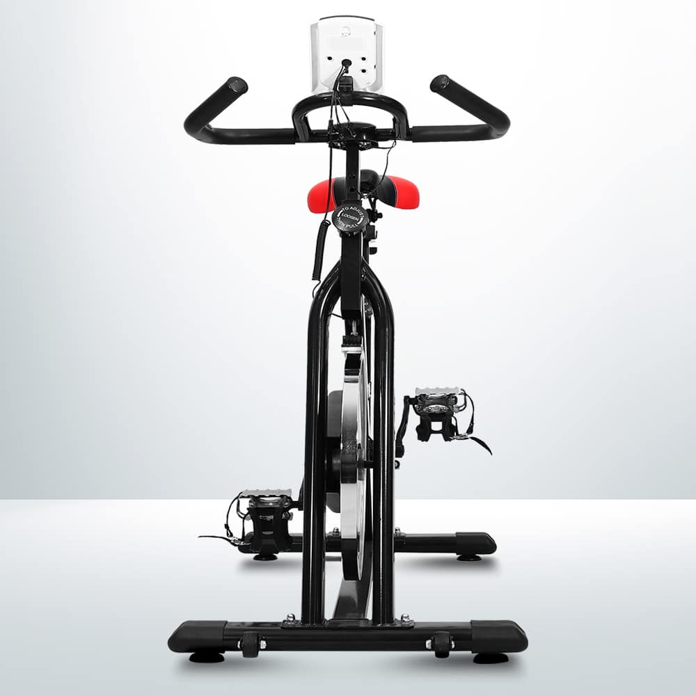 จักรยาน Spin Bike รุ่น LIGHTNING จาก POWER REFORM™ ขับเคลื่อนด้วยระบบสายพาน สร้างแรงต้านด้วยระบบผ้าเบรค จานล้อ Flywheel ขนาด 8 กก. รับน้ำหนักได้ 120 กก. หน้าจอ 6 ฟังก์ชั่น พร้อม วัดชีพจร