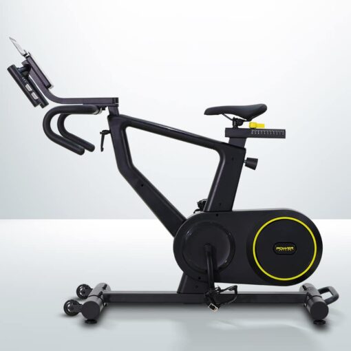 จักรยาน Spin Bike รุ่น ROADSTER จาก POWER REFORM™ ขับเคลื่อนด้วยระบบสายพาน สร้างแรงต้านด้วยระบบแม่เหล็ก Magnetic QMR เงียบ ไม่มีการเสียดสี จานล้อ Flywheel ขนาด 9 กก. หน้าจอ 8 ฟังก์ชั่น พร้อม วัดชีพจร แรงต้านได้ถึง 24 เกียร์ เชื่อมต่อ ZWIFT ได้